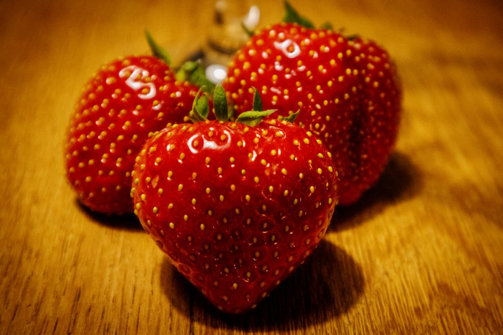 Schon 100 Gramm frische Erdbeeren decken bereits 98% des täglich empfohlenen Bedarfs an Vitamin C, welches im Körper als ein leistungsfähiges und natürliches Antioxidans wirkt. Mit Hilfe vom Vitamin C entwickelt der Körper eine Resistenz gegen Infektionserreger, wirkt gegen Entzündungen und fängt schädliche freie Radikale ab. Der hohe Gehalt der B-Vitamine in der Erdbeere wirkt im Körper als Co-Faktor und unterstützt die Verstoffwechselung von Kohlenhydraten, Proteinen und Fetten. Das Vitamin A und E schützen vor der Alterung der Haut und verhindern verschiedenste Krankheitsprozesse. Erdbeeren gehören wohl zu den gesündesten Beeren weltweit. 100 Gramm Beeren liefern eine Menge wichtiger Mikro- und Makronährstoffe und setzt sich aus unter anderem aus 6 g Kohlenhydraten (wovon 4 Gramm aus Zucker und die restlichen 2 Gramm aus Ballaststoffen bestehen), 1 Gramm Protein und 0,4 Gramm Fette zusammen. Erdbeeren bestehen zu 90% Aus Wasser und sind daher sehr kalorienarm. 100 Gramm Erdbeeren liefern nur 25 Kalorien und decken so bei einer Ernährung mit 2000 Kalorien pro Tag, nur 1% der Gesamtkalorien. Die Erdbeere enthält die Vitamine A, C, E, K und einige B-Vitamine (B1, B2, B3, B6 und Folsäure). Das Vitamin C fördert die Gesundheit von Zahn und Zahnfleisch, unterstützt die Wundheilung und regt die Produktion von Kollagen an. Das Vitamin A spielt eine Schlüsselrolle bei der Gesundheit der Haut, der Schleimhäute und Knochen, das Vitamin E der süßen roten Frucht fördert die Gesundheit der roten Blutzellen das Hämoglobin und verbessert die Absorption von Nährstoffen. Das Vitamin K ist sehr wichtig für die Blutgerinnung und hilft dem Knochen das Kalzium besser zu nutzen und die Knochendichte damit zu verbessern. Die B-Vitamine in der Erdbeere sorgen für ein allgemeines Wohlbefinden, unterstützen die physiologische Gesundheit, regen die Stoffwechselprozesse an und sind für die Herzfunktion, Nerven und das Körperwachstum wichtig.
